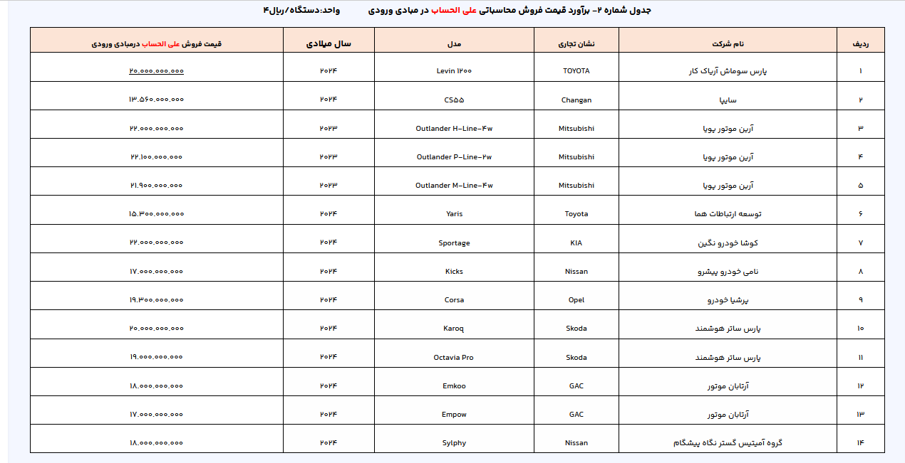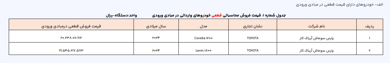 در این دور از عرضه خودروهای وارداتی، ۱۶ مدل خودرو که شامل دو خودرو با قیمت قطعی در مبادی ورودی و ۱۴ مدل خودرو با قیمت علیالحساب در مبادی ورودی است، عرضه شده که متقاضیان میتوانند سه اولویت از سبد محصولات اعلامی انتخاب کنند.