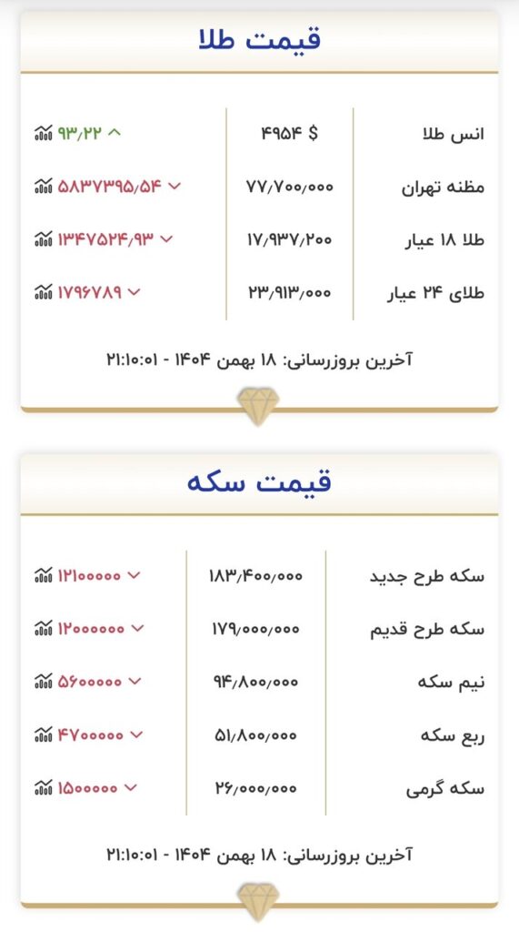 همچنین هر قطعه سکه امامی به قیمت ۱۸۳ میلیون و ۴۰۰ هزار تومان به فروش رفت. سکه بهار آزادی ۱۷۹ میلیون تومان قیمت خورده است.