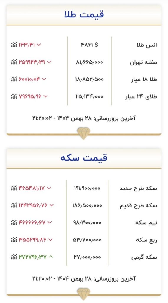 آخرین قیمت طلا و سکه در پایان معاملات ۲۸ بهمن